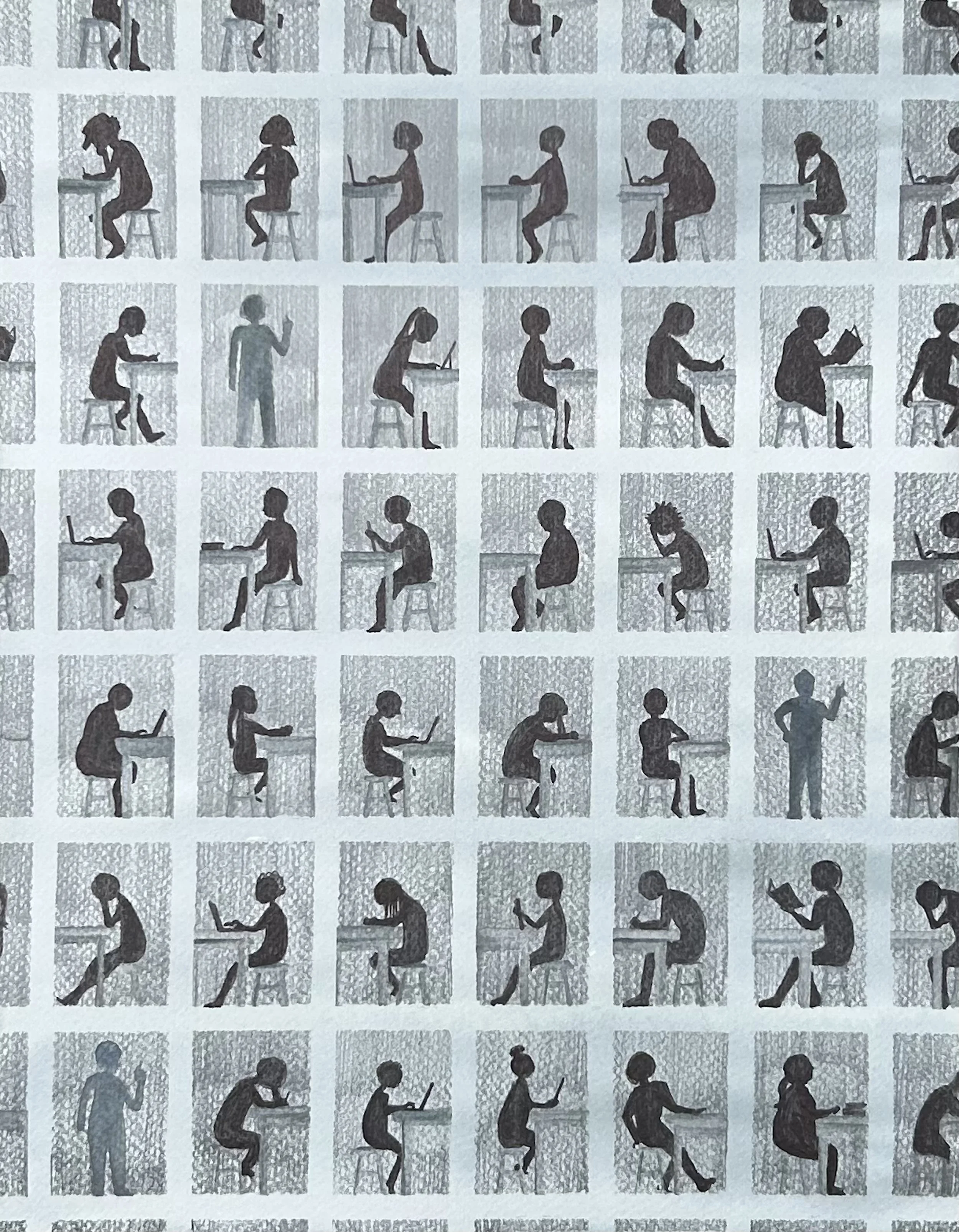 These four pieces of artwork show a progression toward more liberated spaces in physics education. As part of a recent collaborative project exploring spatial justice in physics teaching and learning, researchers engaged me to create artistic renderings of reimagined learning spaces. I chose keywords from the interviews, case study analyses, and other dialogue generated by the project. Then I sorted those words into four categories representing, 1) injustice in traditional physics education spaces, 2) disrupting and reimagining those spaces, 3) a more embodied, collaborative approach to learning, and 4) dreams for the future of education. Each of these categories is the basis for a piece of artwork that invites the viewer to examine their own experiences in physics classrooms and their vision for learning spaces where every student belongs.